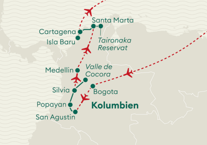 Direktflug mit Edelweiss ab Zürich nach Bogota. Rückflug ab Cartagena nach Zürich.